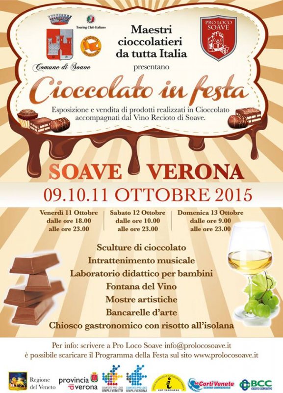 Da venerdì 9 a domenica 11 Ottobre il borgo medievale di Soave ospita nel suo centro storico maestri cioccolatieri da tutta Italia, in occasione del dolcissimo weekend all'insegna del cioccolato, accompagnato dal vino bianco Soave.