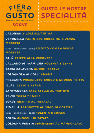 I piatti della tradizione veronese che potrete trovare alla IX Fiera del Gusto, preparati ogni giorno dai volontari delle Pro Loco partecipanti.